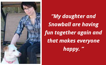 “H3 Essentials are Chewy Chicken Flavored Treats that have become Snowballs favorite. Snowball is my daughters 10 year old rescue dog. H3 Essentials has Omega 3, Flaxseed with Glucosamine Chondroitin made right here in the USA. My daughter and snowball are having fun together again and that makes everyone happy. ”